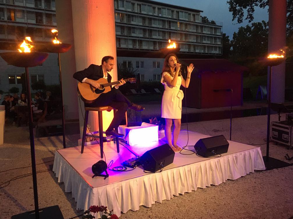 Unsere Mission: die bezaubernde Atmosphäre für Events & Hochzeiten. Wir bieten dezente und stilvolle Live-Musik als perfekte Untermalung für Events und Veranstaltungen. Ob Dinner, Empfang oder Get-Together: genießen Sie ein elegantes Ambiente mit Dinnerjazz, Pop & Lounge. Dargeboten im Akustik Duo mit Gesang & Gitarre. Auf Wunsch können Sie weitere Instrumente wie Saxophon oder Kontrabass hinzubuchen.