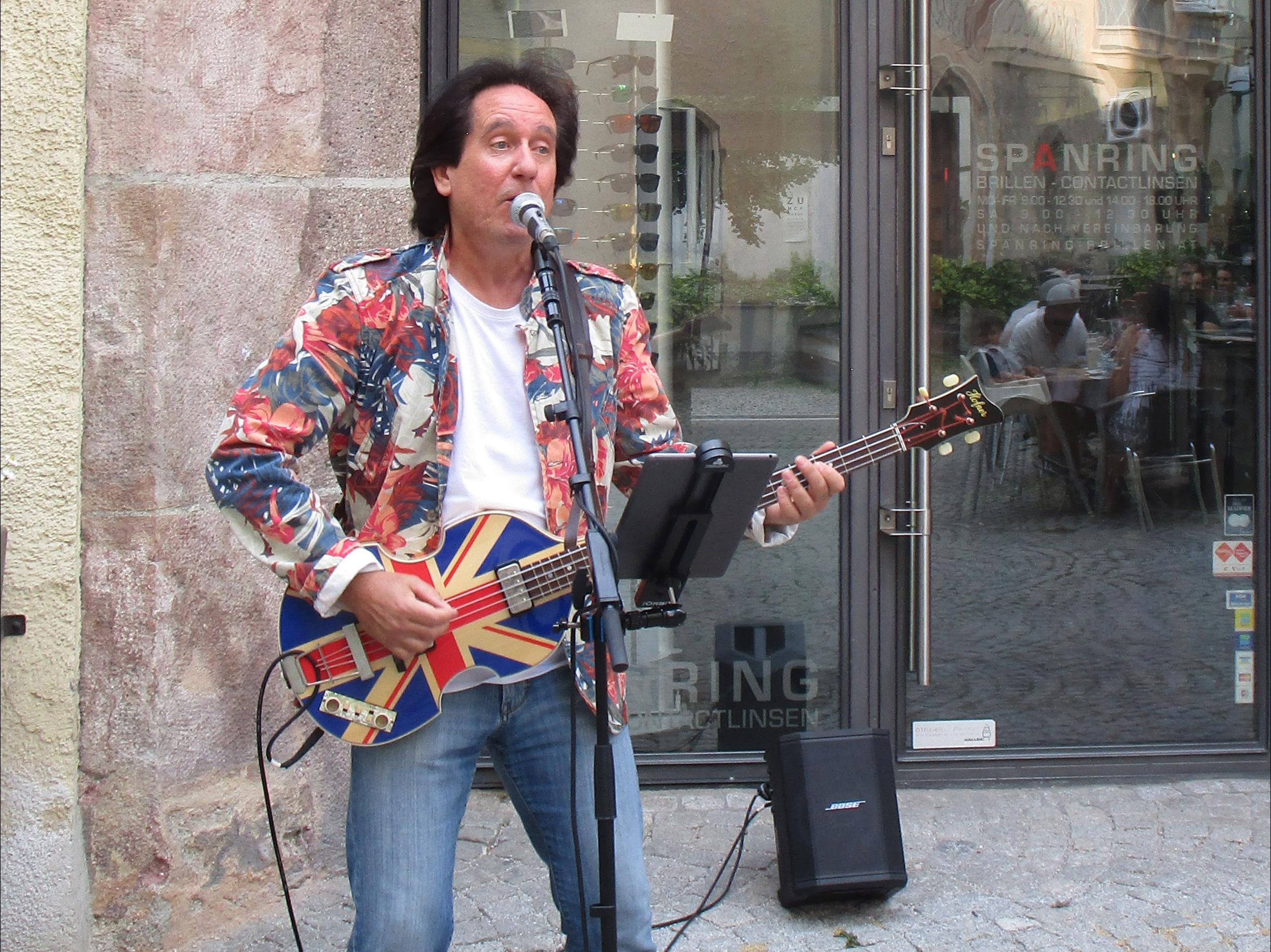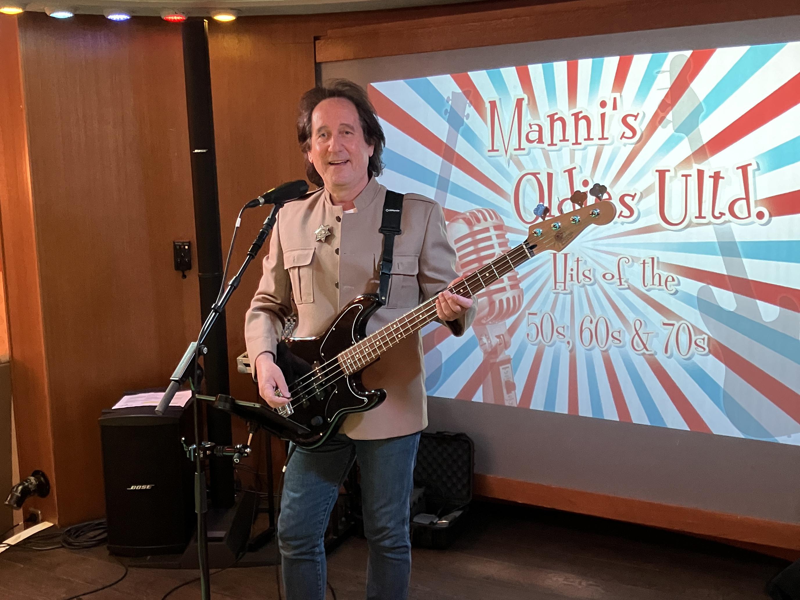 Das ist Manfred Gruber mit seiner Bassgitarre und Gesang, beides natürlich live gespielt und gesungen zu professionell erstellten Halbplaybacks. Von den 50ern bis in die 70er spannt sich das musikalische Spektrum. Englische und amerikanische Oldies gibt's hier jede Menge - mit Hits von den Beatles bis zu Cliff Richard, von Elton John bis zu Smokie und viele, viele weitere.