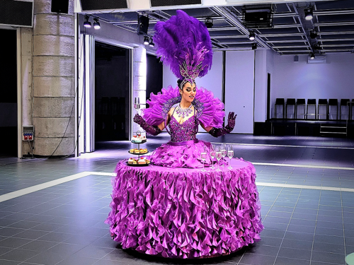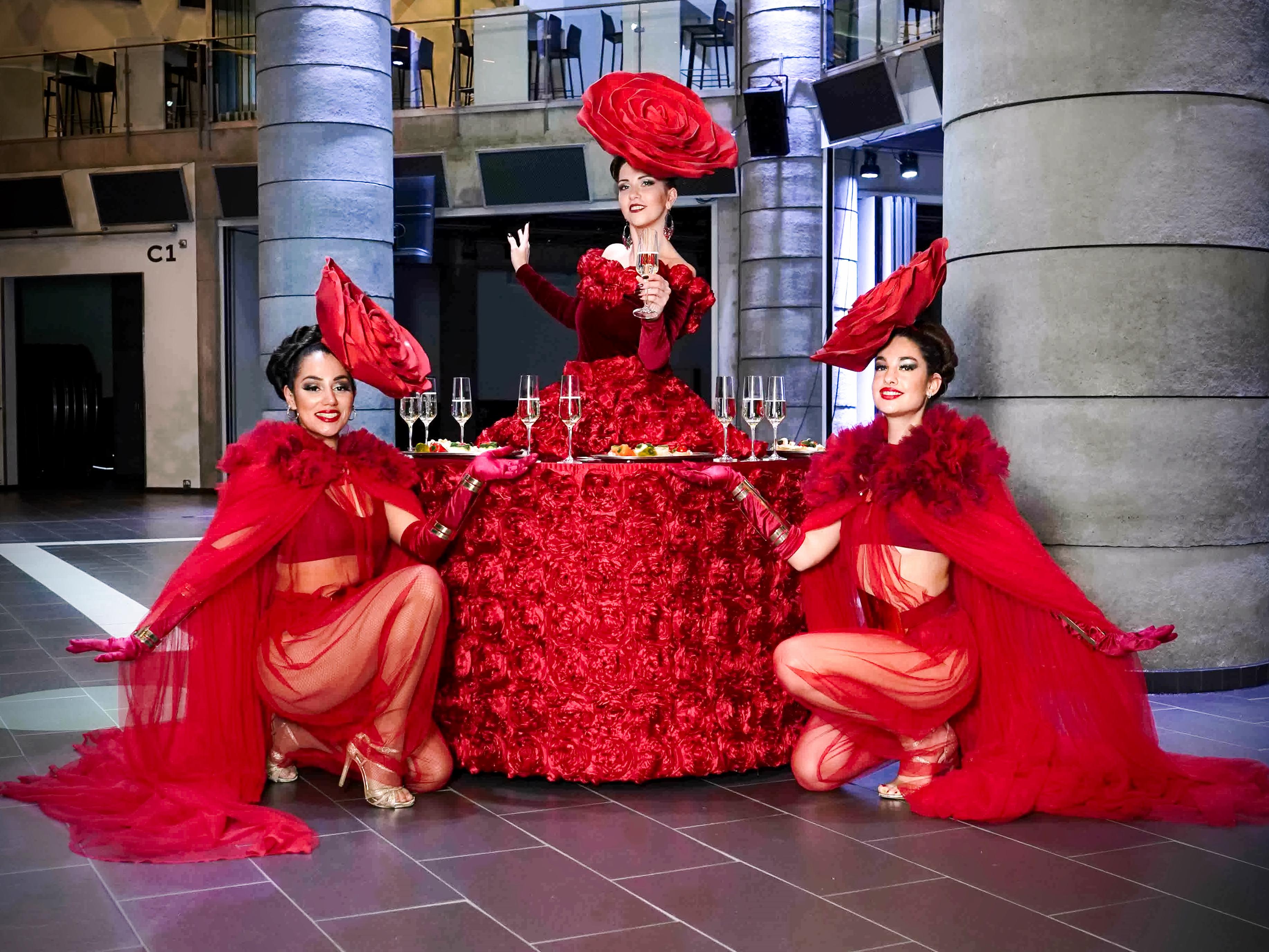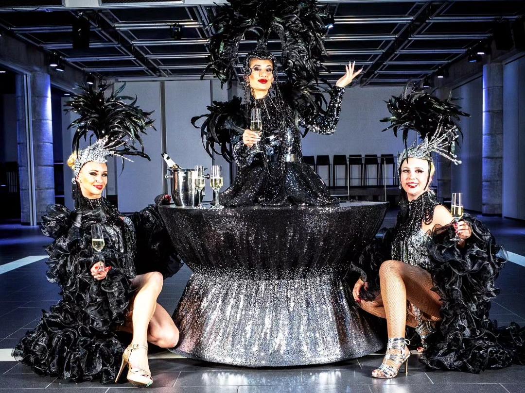 Unsere talentierten Performer/innen verschmelzen mit kunstvoll gestalteten Tischdesigns,