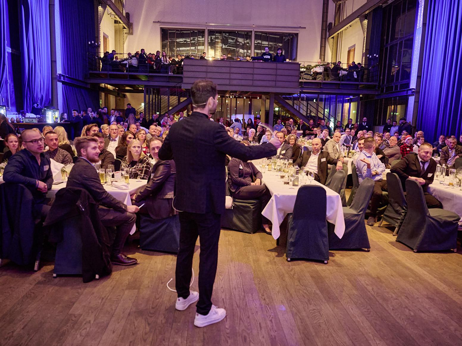 Auf der Bühne präsentiert Oliver Henke atemberaubende Illusionen und packende Magie, die jede Feier zu einem Highlight macht. Ideal für große Events, Firmenfeiern oder Galas.